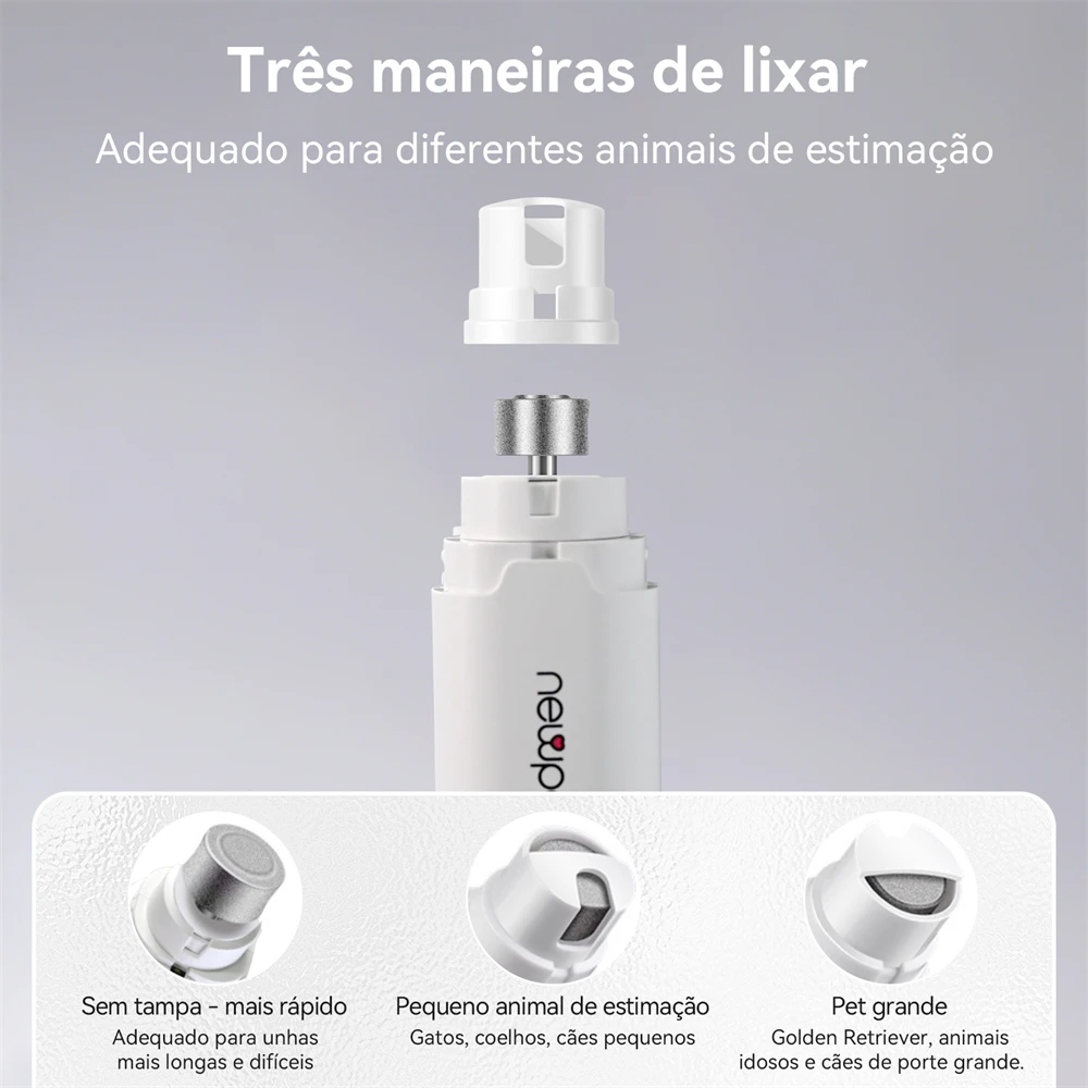 O lixador conta com três opções de lixamento, adaptando-se ao tamanho e tipo de unha: